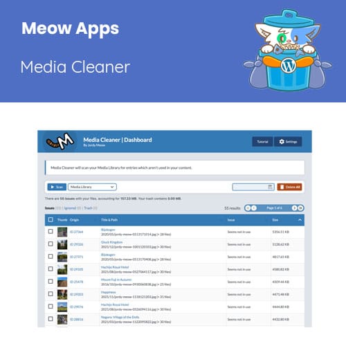 Meow Apps Media Cleaner Pro é uma ferramenta premium projetada para expandir as funcionalidades do seu site WordPress. Amplamente utilizado por desenvolvedores e webmasters, ele oferece uma série de recursos avançados que podem ser aplicados com facilidade, sem necessidade de codificação.
